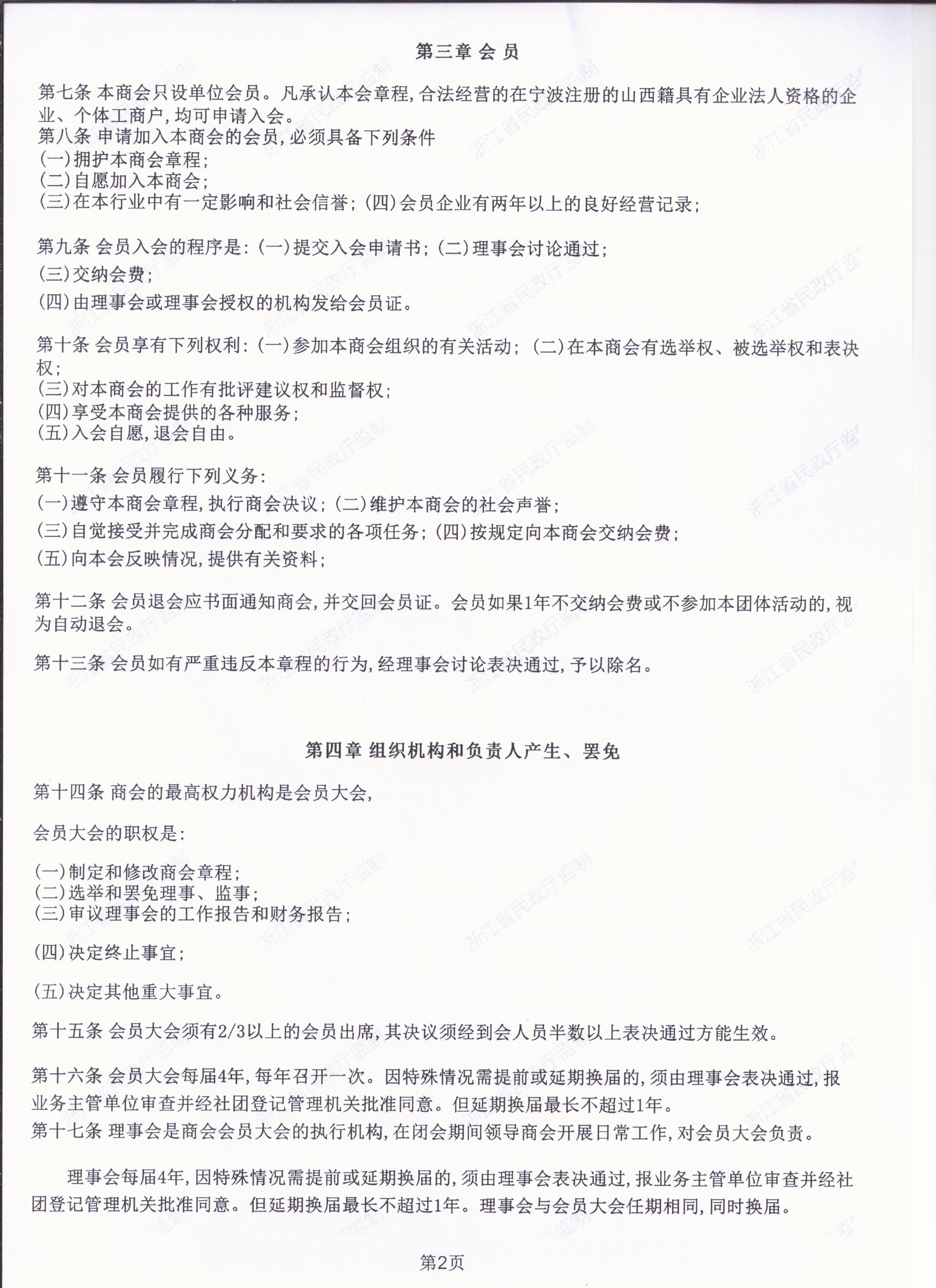 发展至今,我商会有包括制造业、建筑业、农牧业、批发零售业、交通运输业、住宿餐饮业、软件信息业、金融业和租赁服务业等各行业会员100余名,通过《宁波市山西商会章程》2022年第四届换届选举产生了,会长1名,执行会长3名、常务副会长5名、副会长3名、监事长1名、理事35名、党支部在册成员十一名、入党积极分子四名。