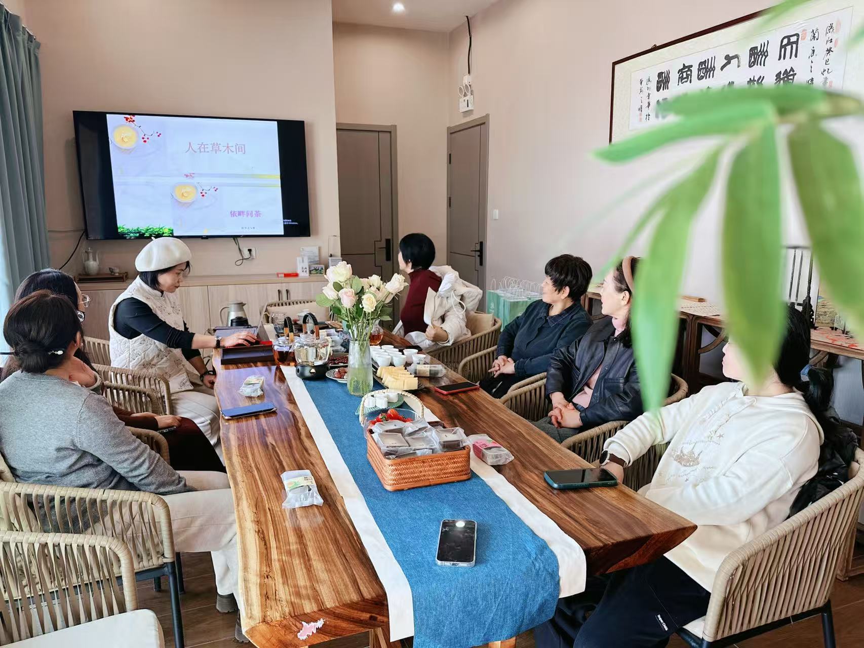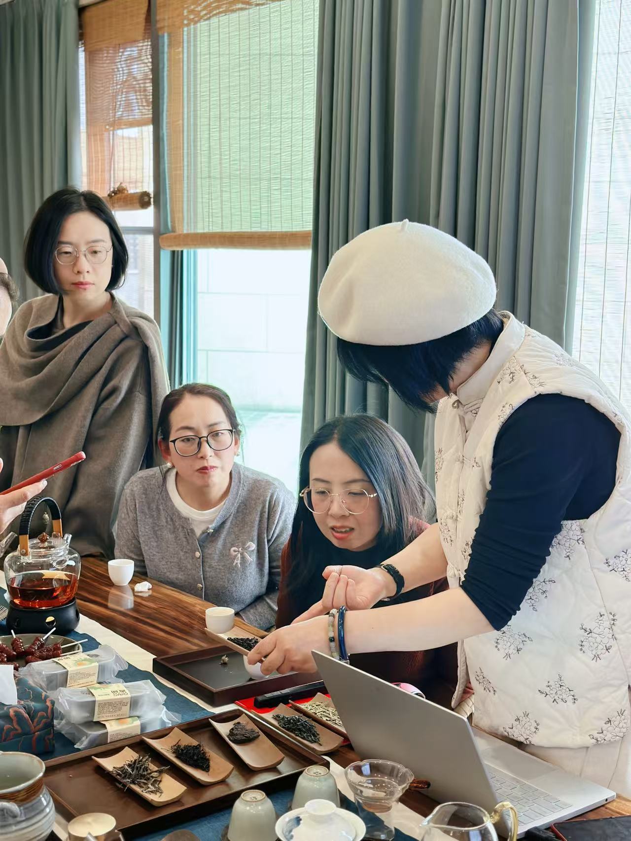 姐妹们轻轻拿起一片片茶叶,近距离触摸着不同工艺下茶的特色形态。绿茶的鲜绿、红茶的乌润、乌龙茶的条索紧结、黑茶的醇厚质朴、白茶的毫香显露、黄茶的黄亮润泽,每一种都诉说着独特的制茶工艺与故事。最后,在和谐快乐的氛围中,姐妹们体验了生活茶道的魅力。品饮各类茶品时,茶香在口腔中弥漫开来,伴随着欢声笑语,充满了整个茶室。